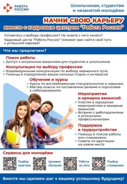 Информационный материал для учащихся о возможностях центров занятости и доступных для молодежи сервисах Единой цифровой платформы в сфере занятости и трудовых отношений «Работа в России»
